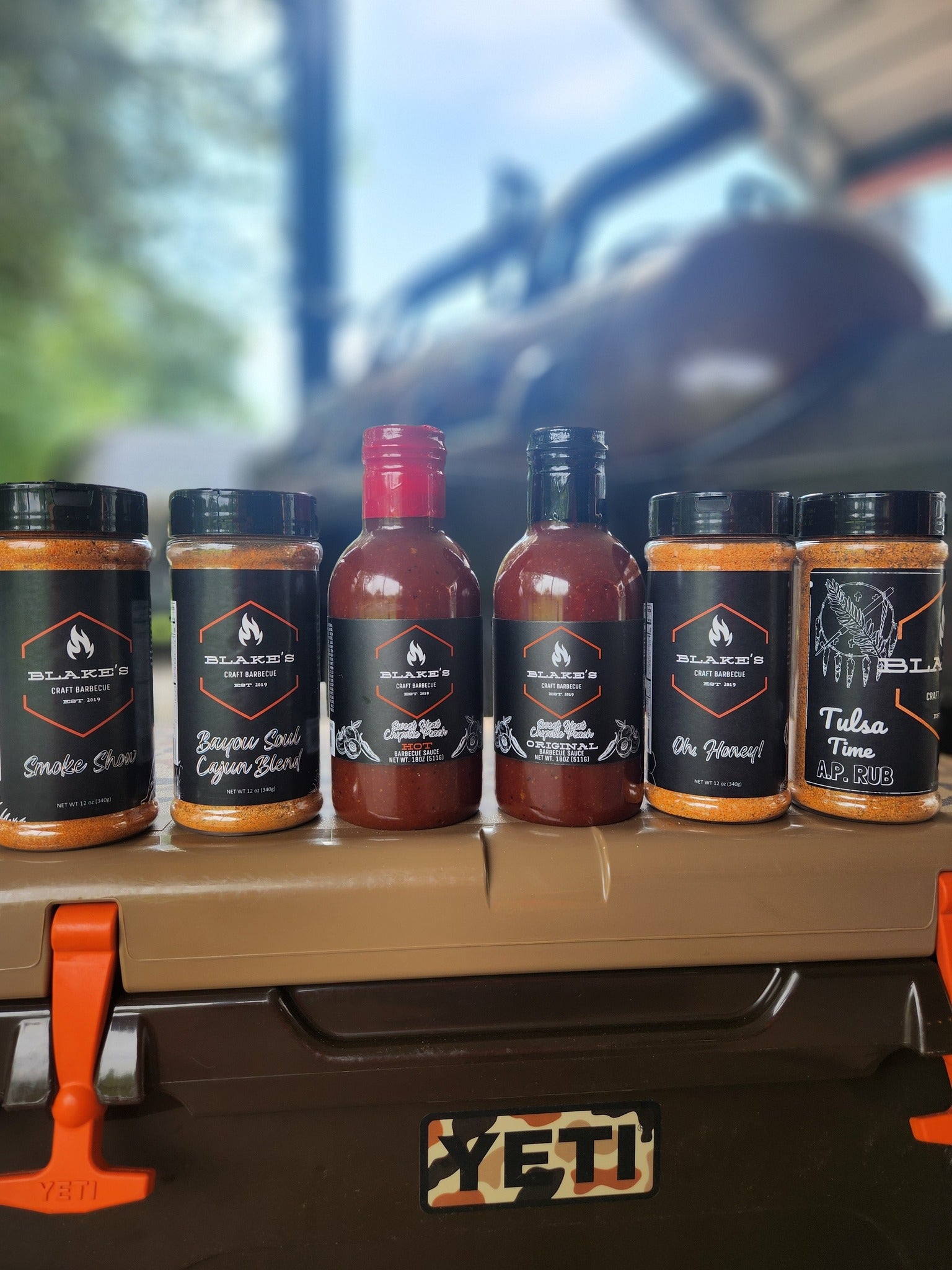 The Works is the ultimate Blake’s experience — four handcrafted rubs and two small-batch sauces, built for those who want it all. From slow-smoked brisket to award winning ribs, this collection delivers every layer of flavor you need to master the pit. Our complete lineup of handcrafted sauces and rubs in one premium set. It’s the perfect gift for the pitmaster in your life — or the ultimate upgrade for your own barbecue game.